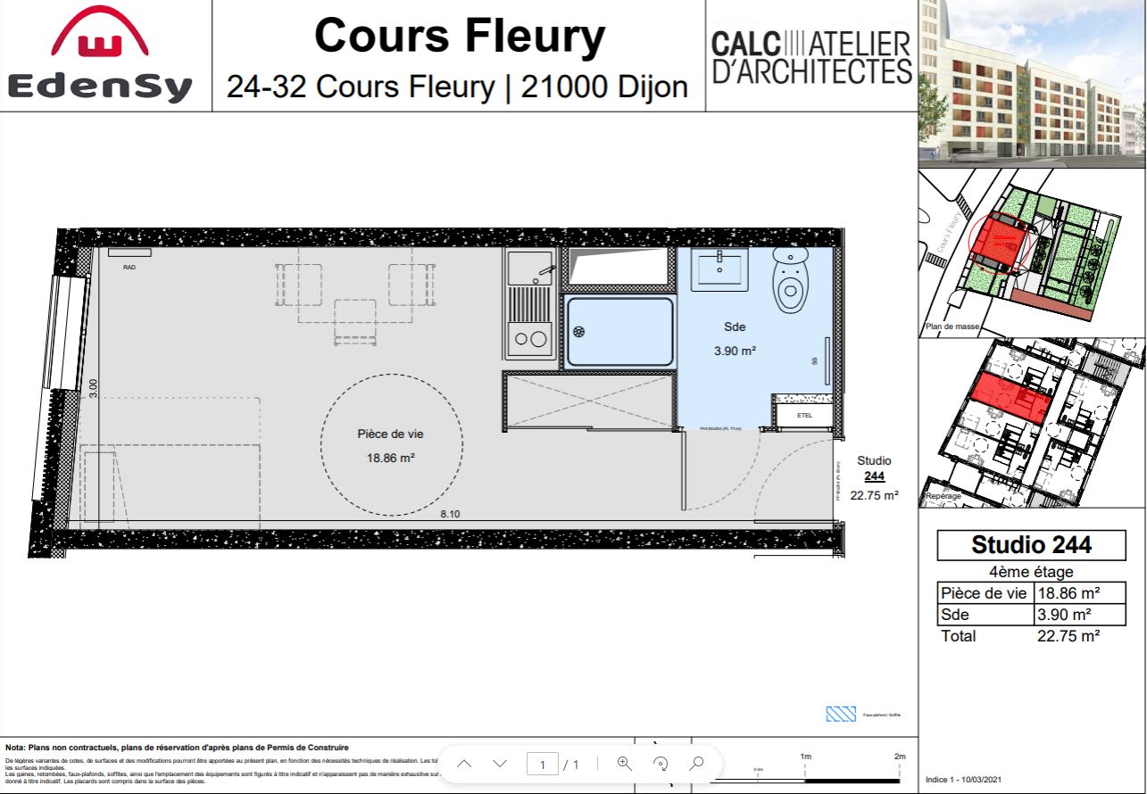 Appartement · Location Dijon (21000) 1 pièce · 23m²