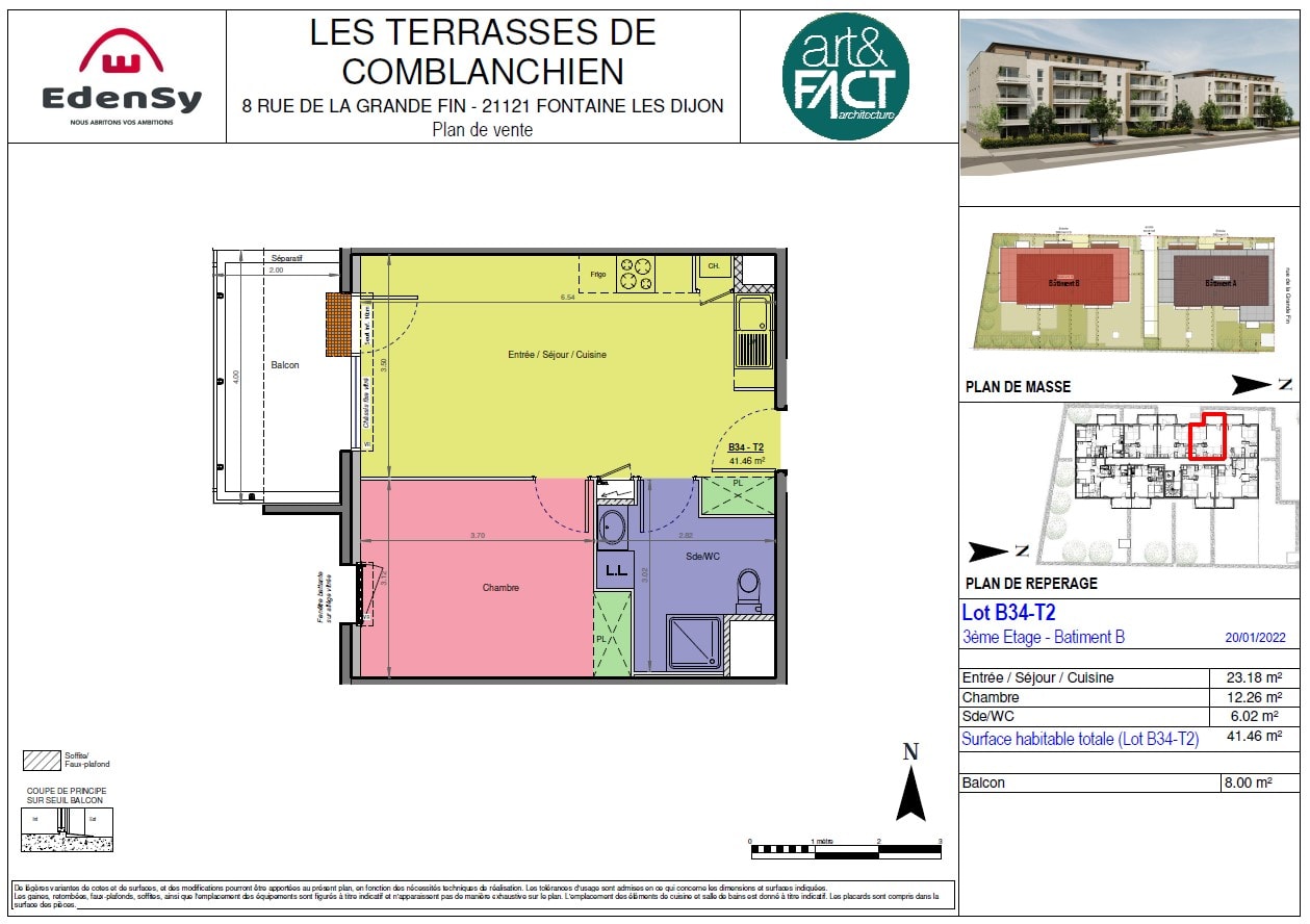 Appartement · Location Fontaine Les Dijon (21121) 2 pièces · 41m²